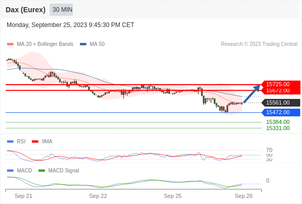 如跌破 15472 ,德国DAX指数期货 (Eurex) 目标方向定在 15384 和 15331 。