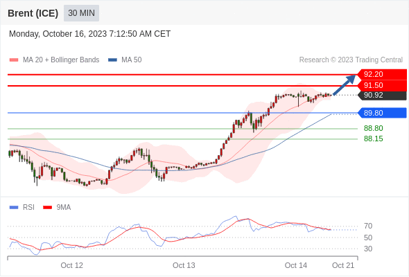 布伦特原油 (ICE)? (Z3)? 当日内: 在89.80之上,看涨。