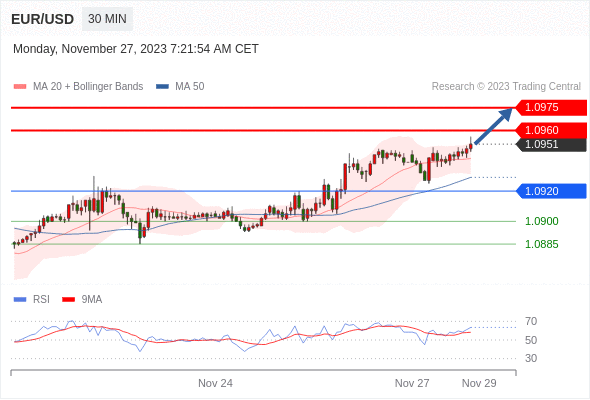 在 1.0920 之上,看涨,目标价位为 1.0960 ,然后为 1.0975 。