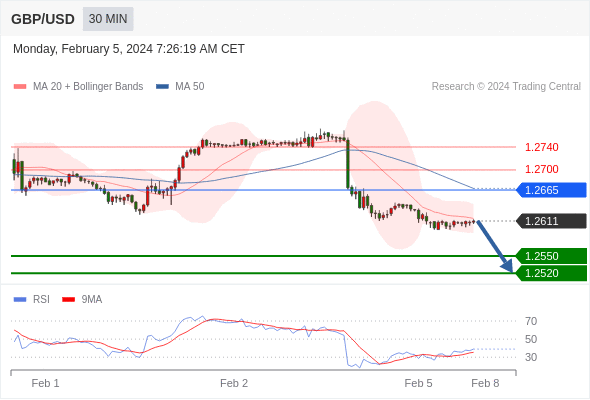在 1.2665 之下,看跌,目标价位为 1.2550 ,然后为 1.2520 。