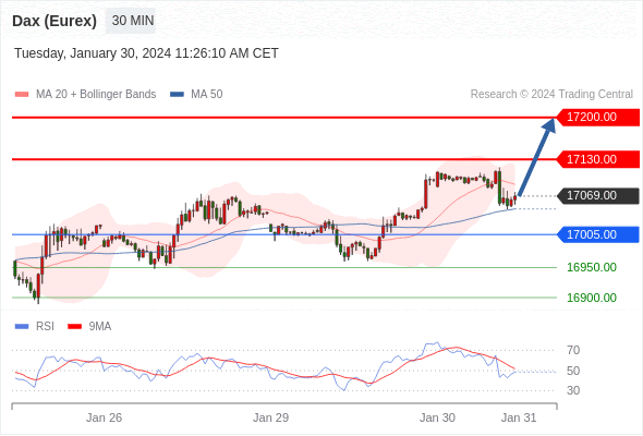在 16880.00 之上,看涨,目标价位为 17060.00 ,然后为 17120.00 。
