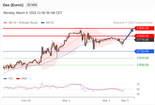 在 17710.00 之上,看涨,目标价位为 17800.00 ,然后为 17845.00 。