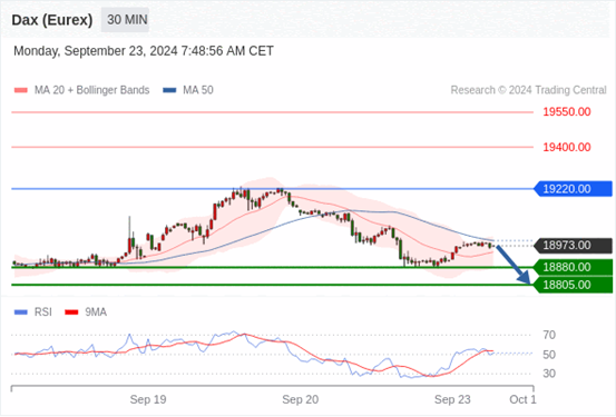 德国DAX指数期货 (Eurex)? (Z4)? 当日内: 短期关键阻力位在19220.00。