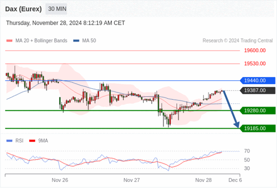 在 19440.00 之下,看跌,目标价位为 19280.00 ,然后为 19185.00 。