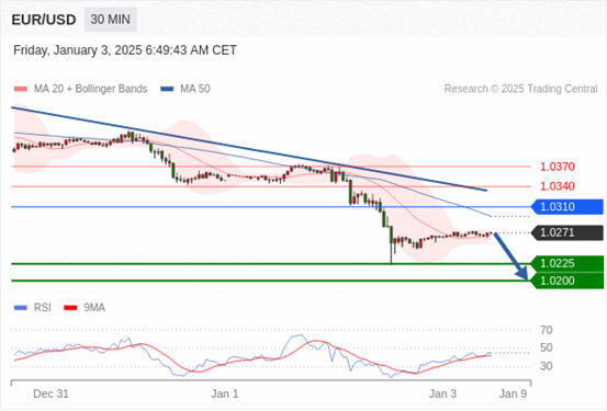 欧元/美元 当日内: 短期关键阻力位在1.0310。