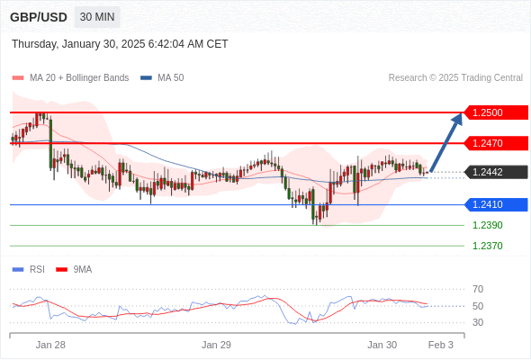 在 1.2410 之上,看涨,目标价位为 1.2470 ,然后为 1.2500 。