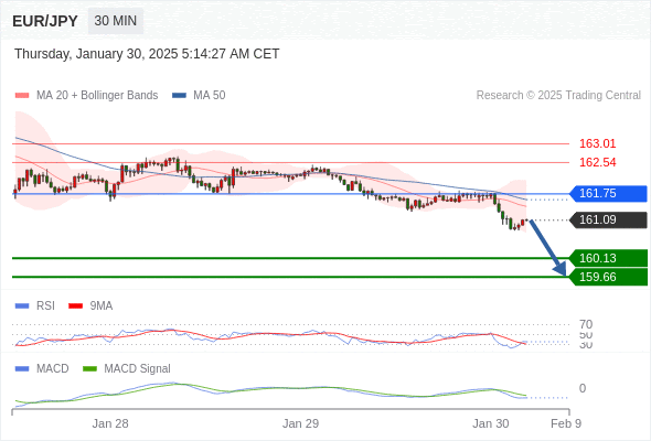 欧元/日元 当日内: 看跌,在 161.75 之下。