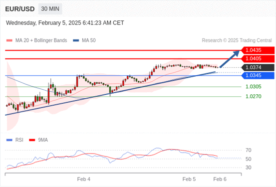 在 1.0345 之上,看涨,目标价位为 1.0405 ,然后为 1.0435 。