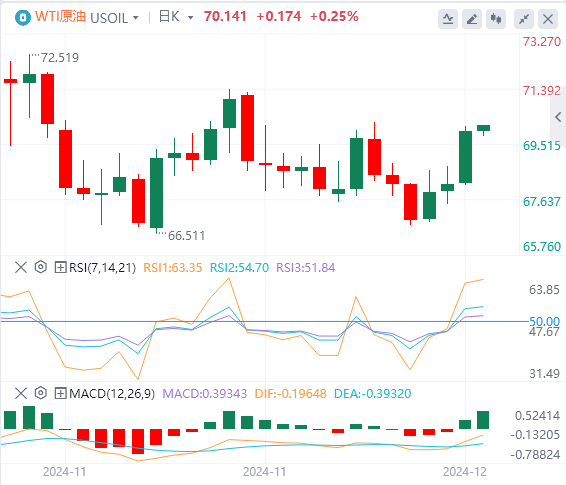 价格保持在70.13美元的枢轴点上方,这是一个支撑其近期上涨势头的关键水平。