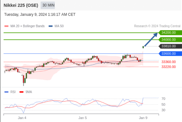 在 33600.00 之上,看涨,目标价位为 34000.00 ,然后为 34200.00 。